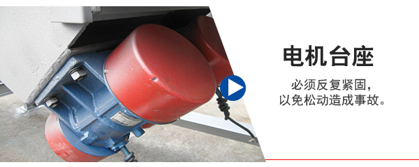 5、電機臺座:安裝振動電機,使用前連接螺釘必須擰緊,特別是新篩機試用前三天、必須反復緊固,以免松動造成事故。