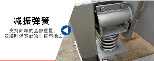 6、減振彈簧:阻止振動傳給地面,同時支持篩箱的全部重量,安裝時,彈簧必須垂直與地面。
