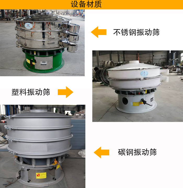 不銹鋼振動篩廠家304/316L不銹鋼材質,耐200℃高溫、防腐防蝕、耐酸耐堿