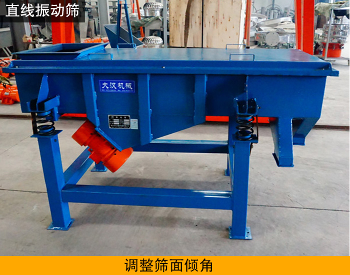 直線振動篩在設計傾角時通常情況下為45°,但在實際使用過程中如果物料中雜質少只需粗篩一下就行的時候用戶可以適當調節進料口下部的振動彈簧高度,使進料口高度升高就可以加快物料在篩面的運動從而提高產量。