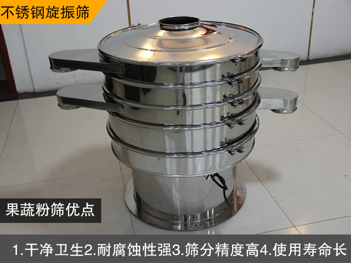 不銹鋼振動(dòng)篩的篩分精度非常高,能篩至500目(0.028mm),或者過濾至0.005mm,能夠滿足果蔬粉的篩分精度。