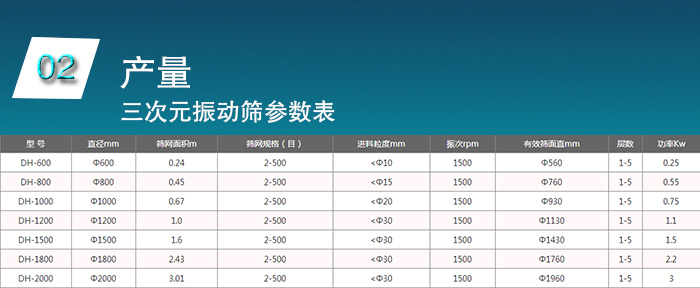不銹鋼三次元振動(dòng)篩作為非常適合篩分奶粉的設(shè)備,不僅篩分精度高,篩分的產(chǎn)量也能夠滿足大多消者的需求,而其價(jià)格是與產(chǎn)量是成正相關(guān)的,產(chǎn)量越大,價(jià)格越高,具體參數(shù)如參數(shù)表所示。