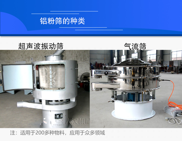 鋁粉由于是一種粉狀物料,在篩分時容易出現卡網或者堵網的現象,并且其粉末的特性容易出現粉塵的污染,所以通常會采用超聲波振動篩或者氣流篩這樣的篩分設備,不僅能夠解決網孔堵網的問題,提升產品的篩分質量,還能夠避免污染,保證工人的安全。但是這兩種振動篩價格是有很大差異的,超聲波振動篩是傳統旋振篩的基礎上安裝了超聲波篩分系統,價格相對較低;而氣流篩則是采用了全新的動能方式,利用的空氣作載體,動能做功的原理,價格相對較高。