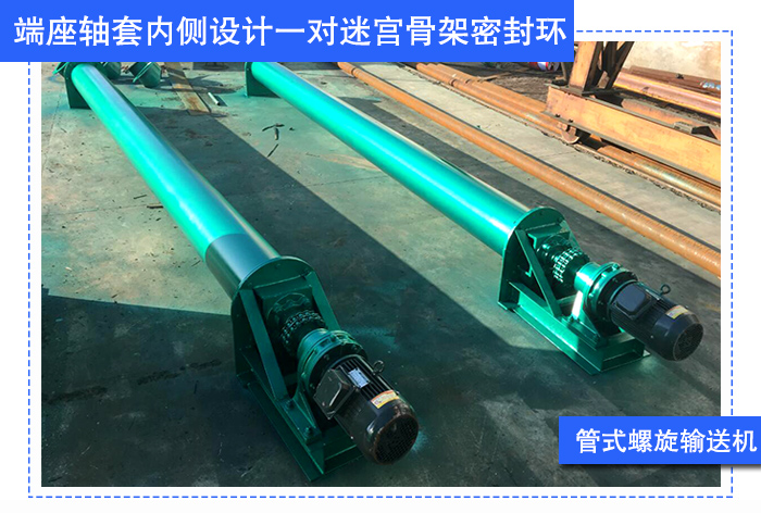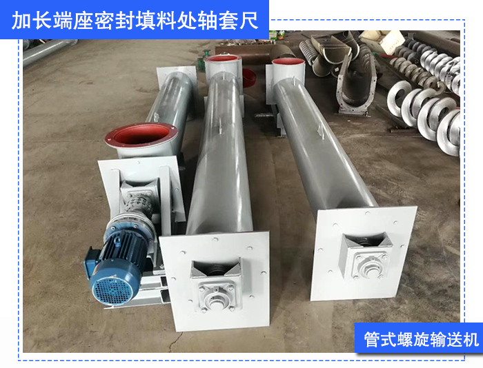 管式螺旋輸送機加長端座密封填料處軸套尺寸,這樣就增加了盤根的圈數,增強了密封效果。