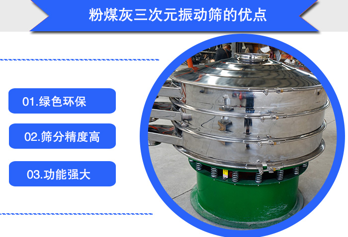 大漢機(jī)械技術(shù)部根據(jù)粉煤灰是粉末狀物料,容易產(chǎn)生揚(yáng)塵,所以推薦使用三次元振動篩進(jìn)行篩分。