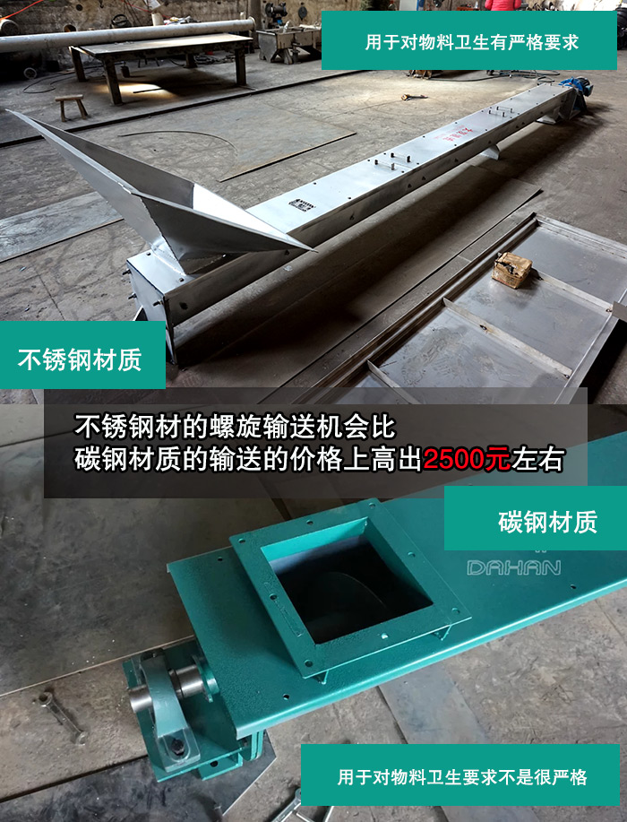 總上所述不銹鋼材的螺旋輸送機會比碳鋼材質的輸送的價格上高出2500元左右。