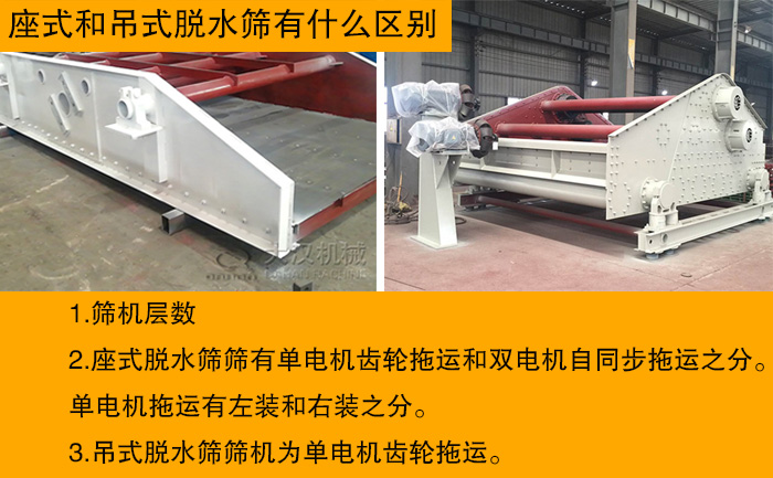 脫水振動篩的處理量大,篩分效率好,受到廣大用戶的好評,但是它又分為座式和吊式兩種,那么這兩款有什么區別呢,接下來讓我們一探究竟。