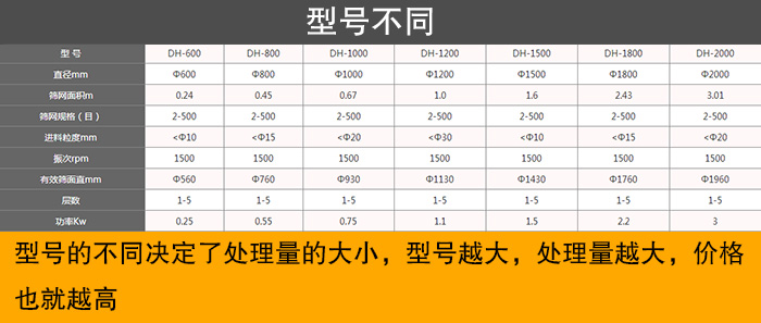 石英砂振動篩型號分為400到2000都有,這些型號的不同決定了處理量的大小,型號越大,處理量越大,價格也就越高。