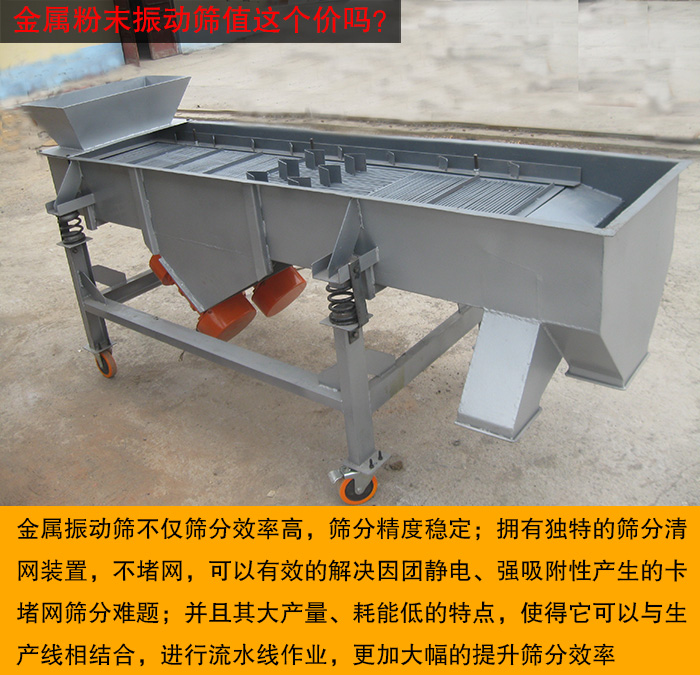 金屬粉末振動篩根據用戶的需求不同,會做成不同的振動篩結構,一般有閘門式振動篩、加緣式振動篩、普通式振動篩或直線型振動篩,而這些結構會造成產品的價格產生很大差異。